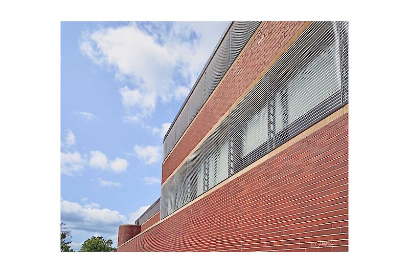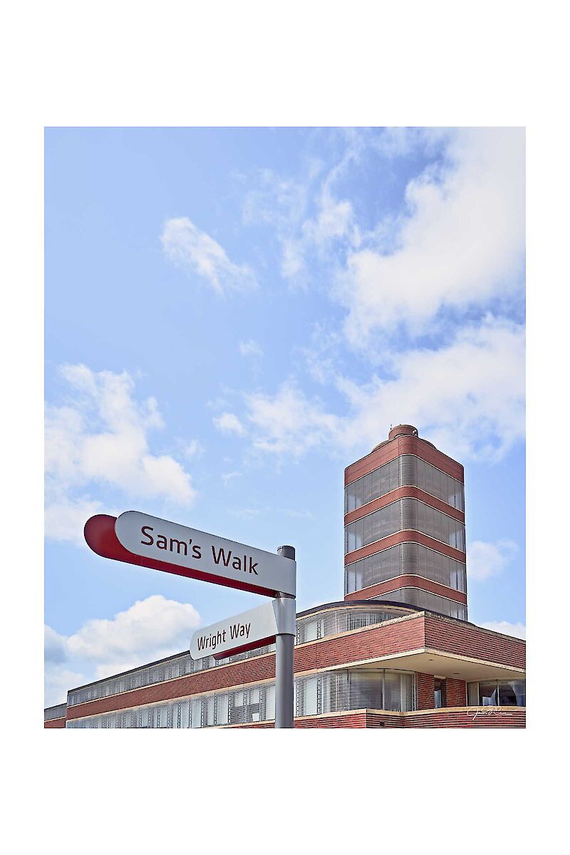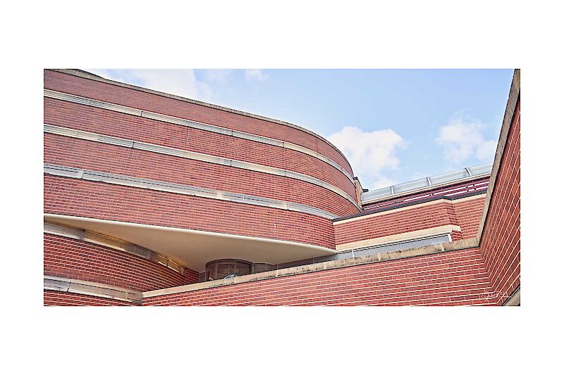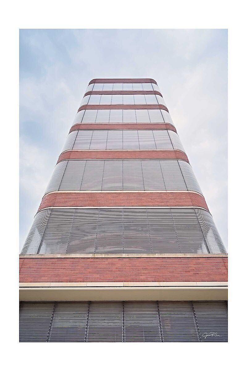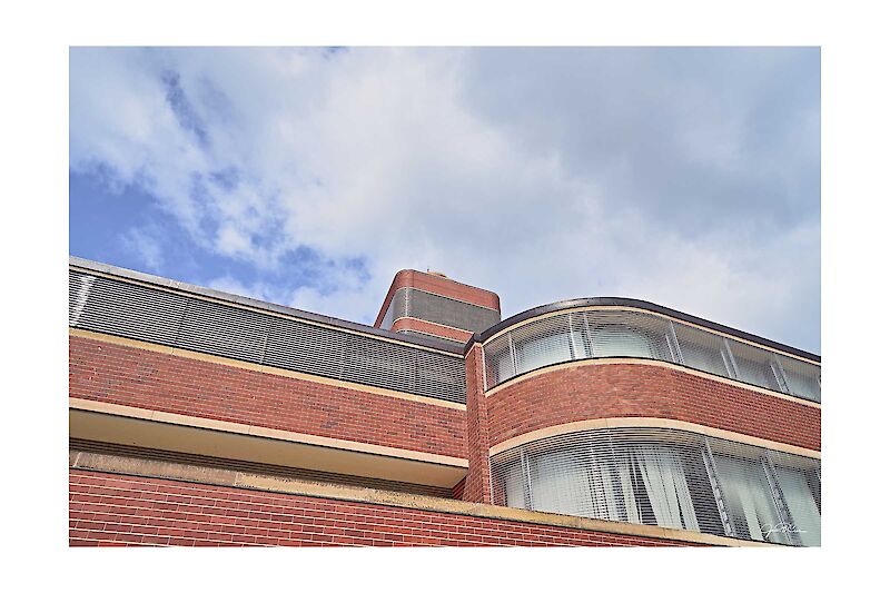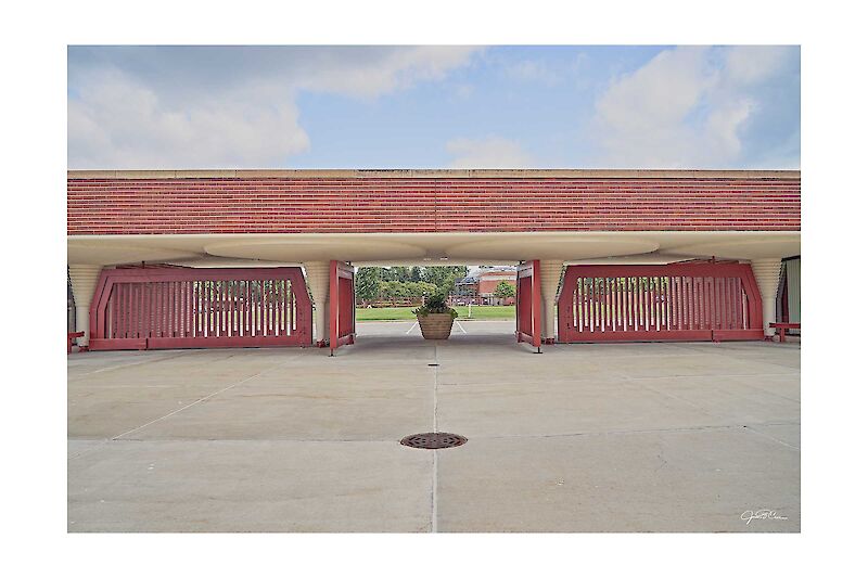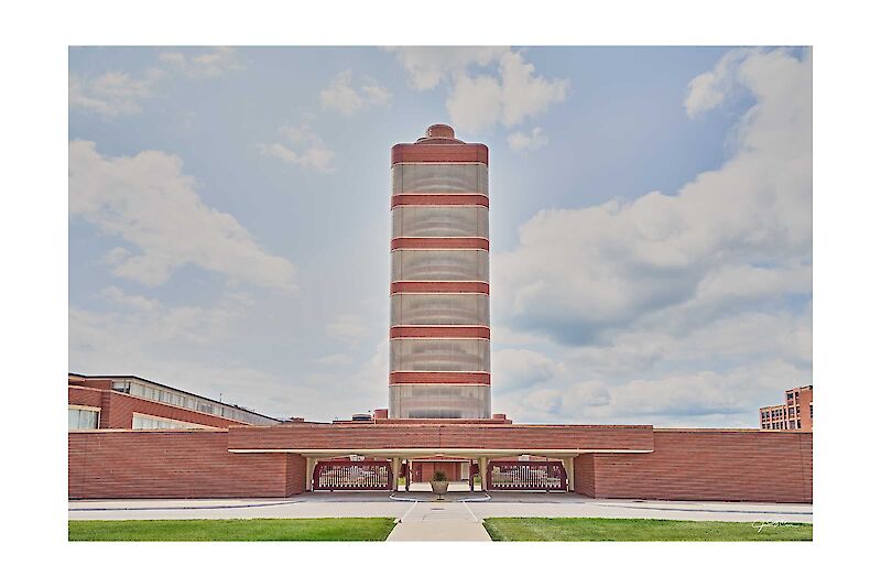 Built between 1939 (Administration Building) and 1950 (Reseach Tower), the S.C. Jonson Wax Headquarters in Racine, Wisconsin was part of Frank Lloyd Wright's re-emergence back onto the world architecture scene. Built contempraneously with Fallingwater, S.C. Johnson is radically different in materials and design, favoring brick over stone and industrial over organic. Still apparent is Wright's emphasis on the horizontal, even in the later horizontally layered Research Tower.