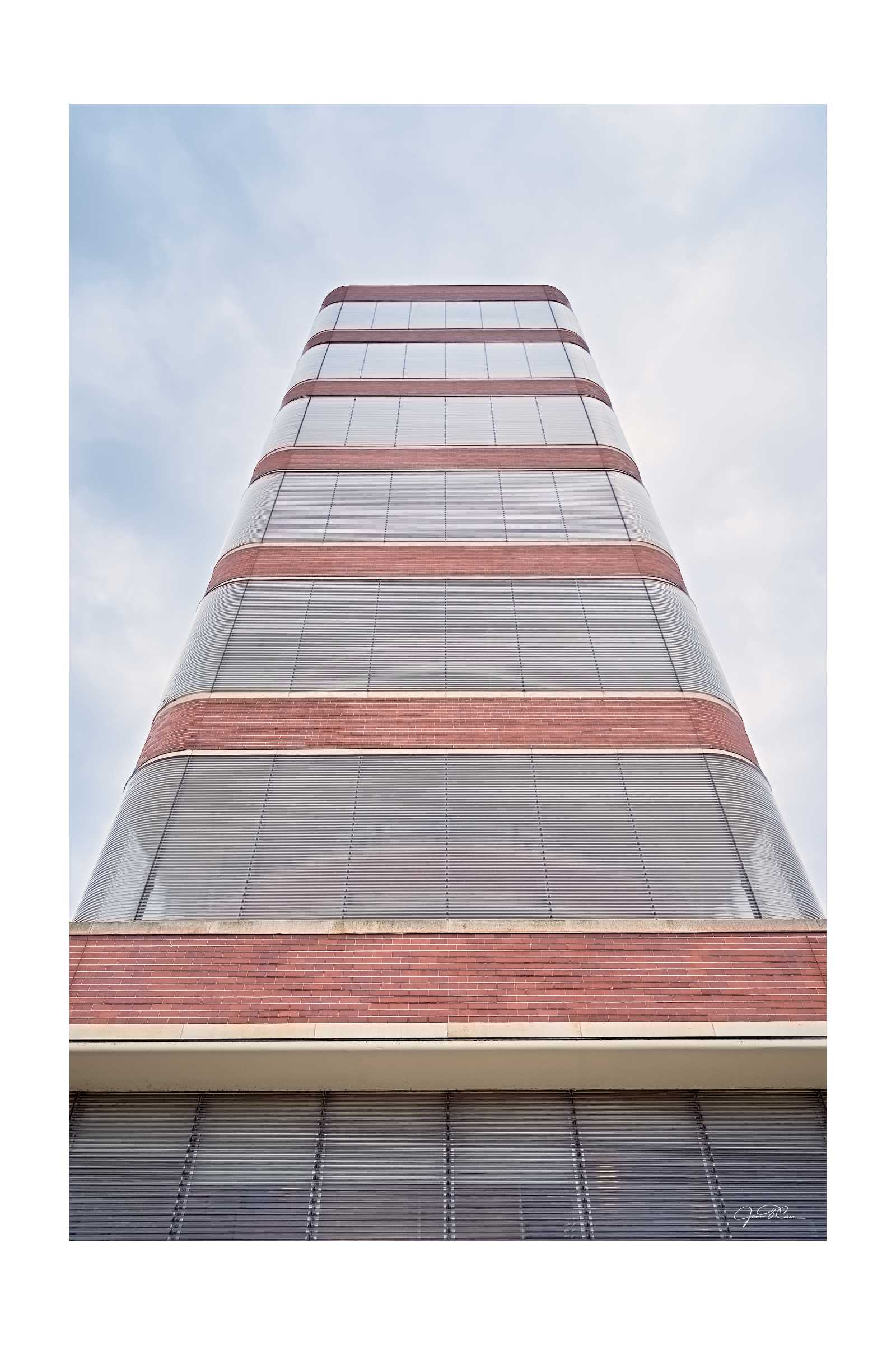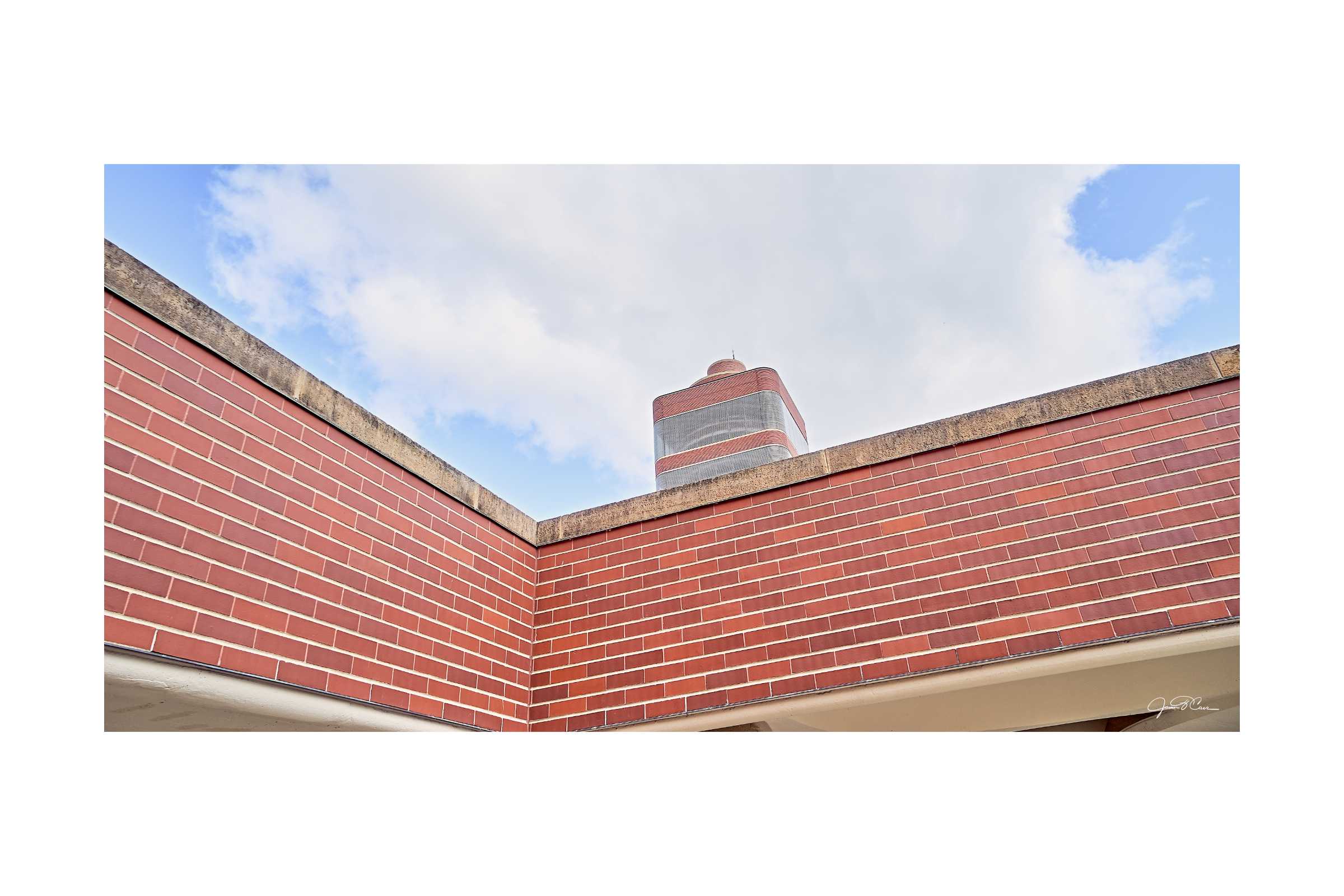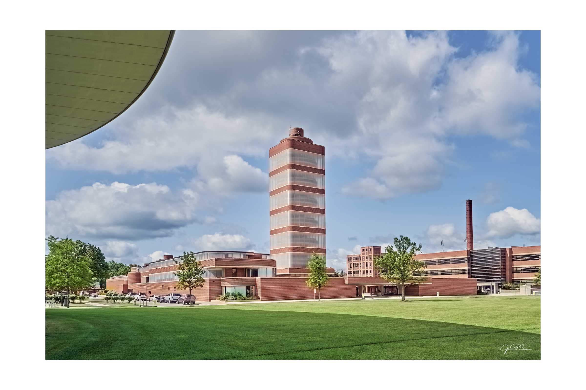 Built between 1939 (Administration Building) and 1950 (Reseach Tower), the S.C. Jonson Wax Headquarters in Racine, Wisconsin was part of Frank Lloyd Wright's re-emergence back onto the world architecture scene. Built contempraneously with Fallingwater, S.C. Johnson is radically different in materials and design, favoring brick over stone and industrial over organic. Still apparent is Wright's emphasis on the horizontal, even in the later horizontally layered Research Tower.