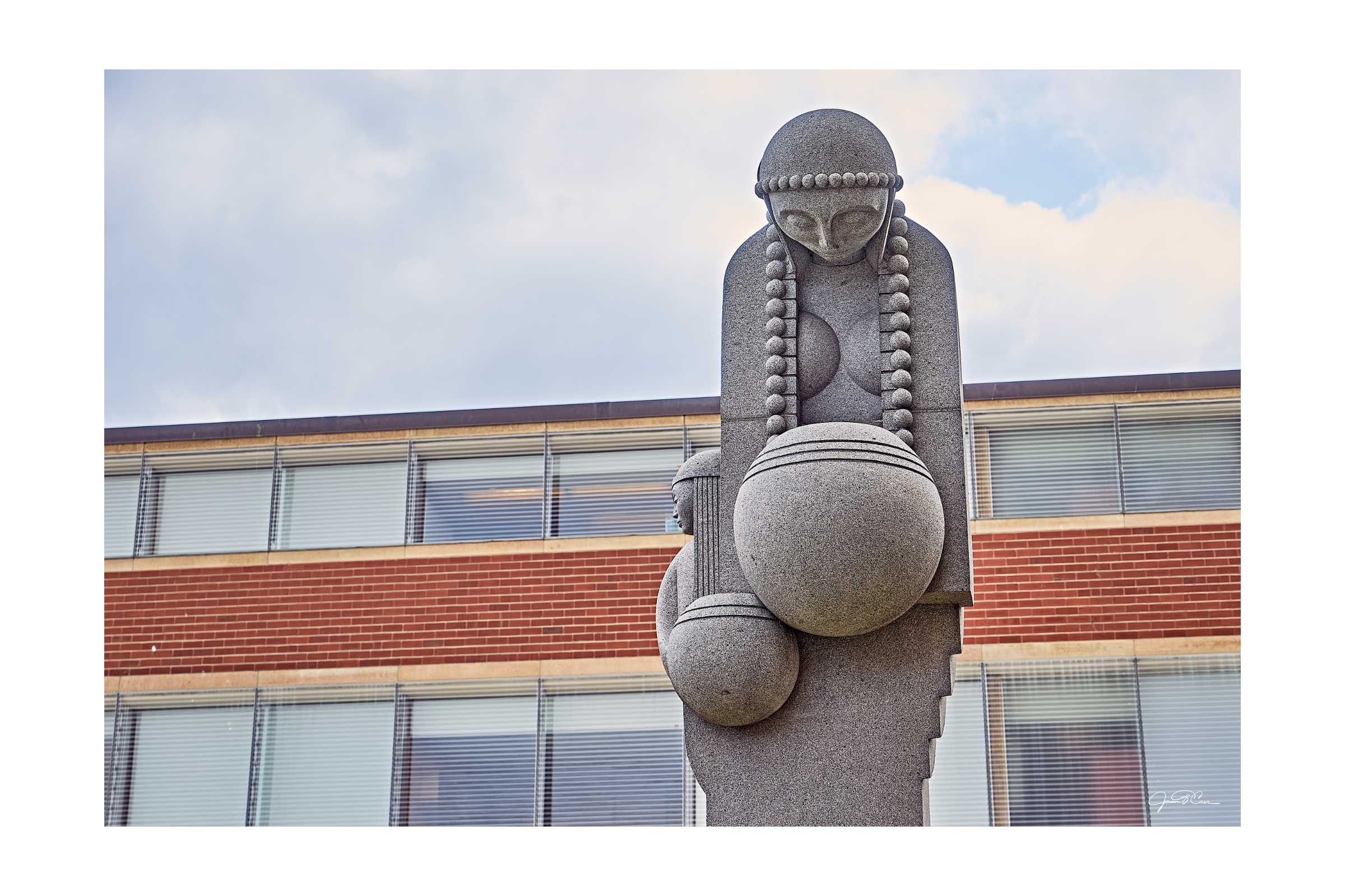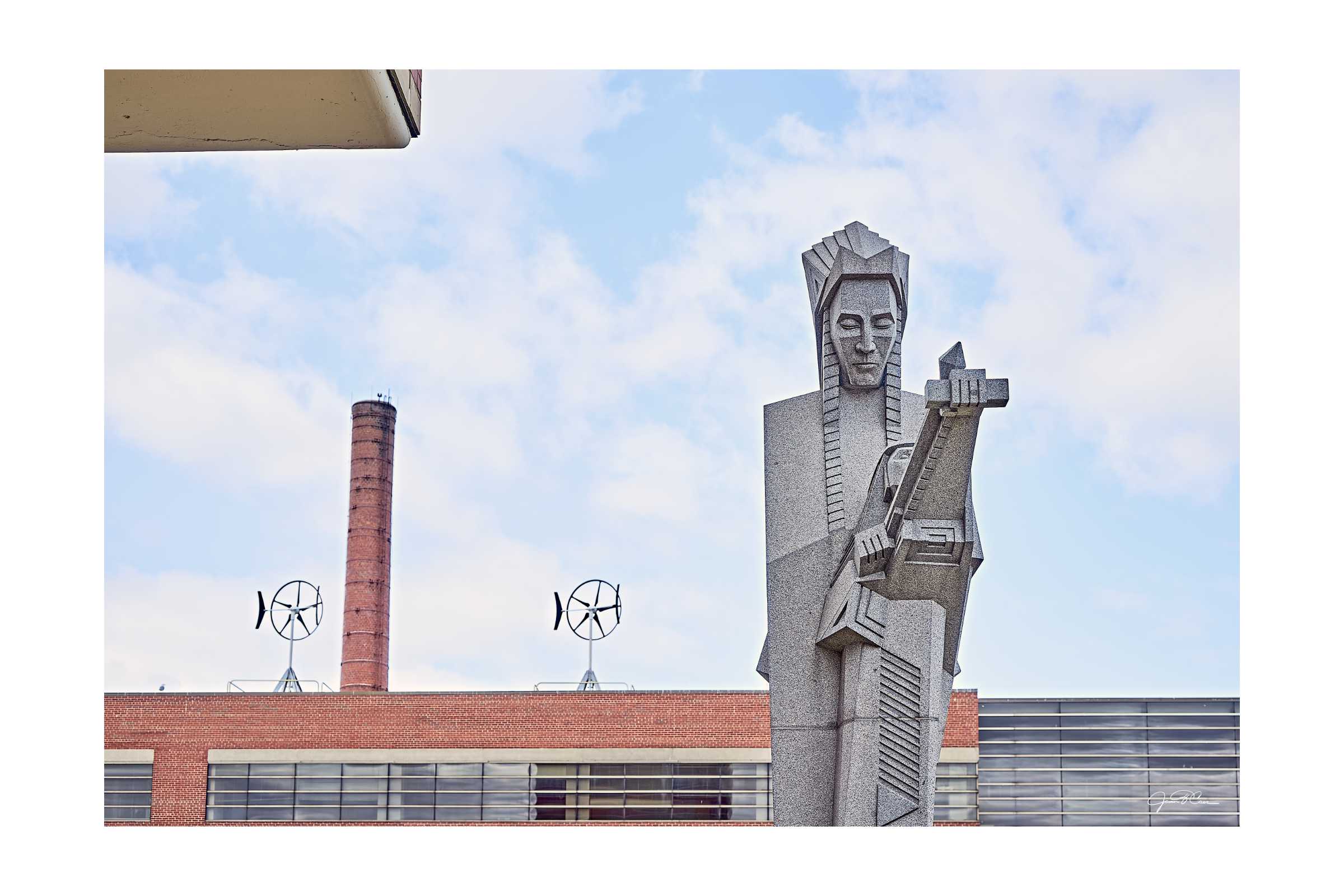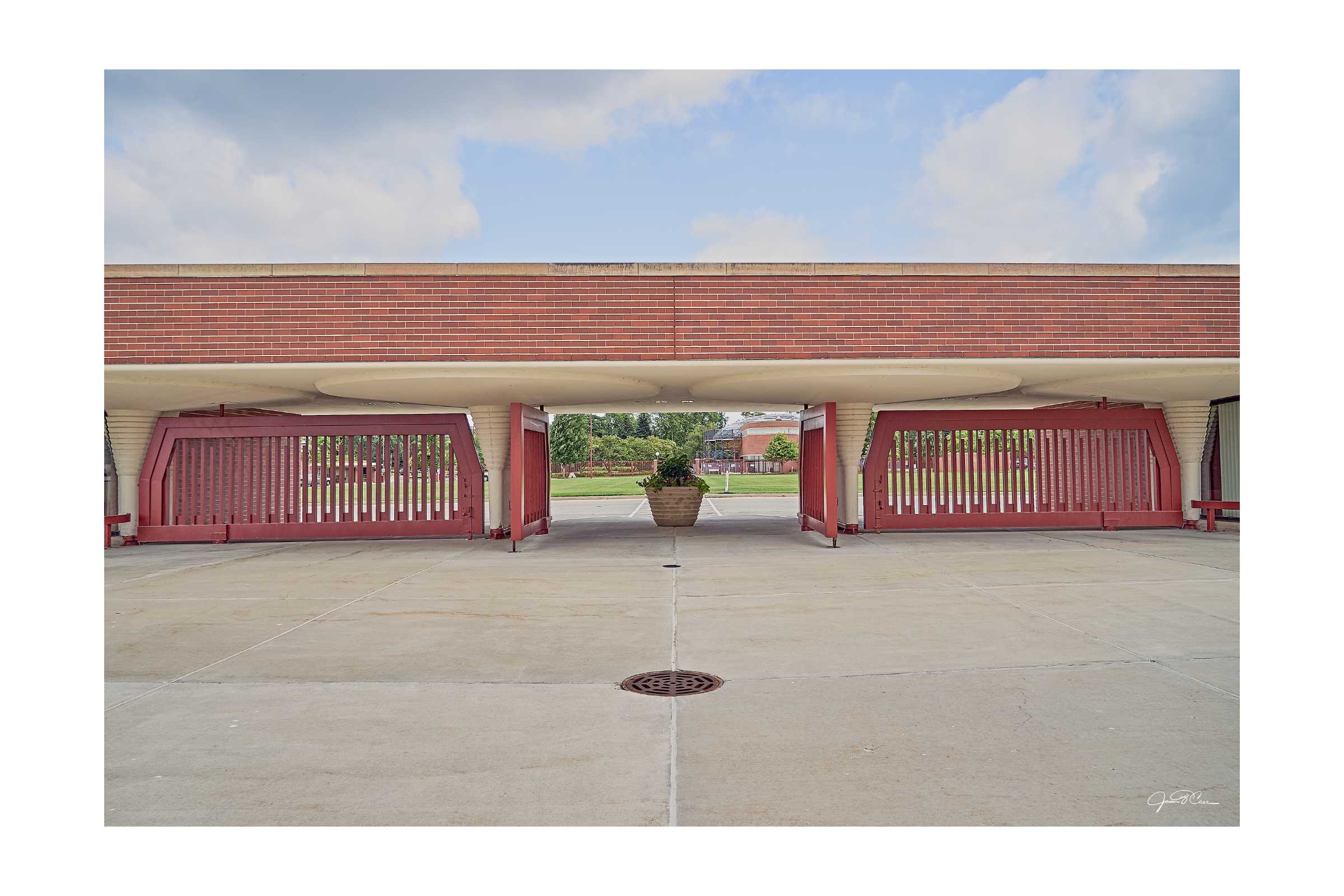 Built between 1939 (Administration Building) and 1950 (Reseach Tower), the S.C. Jonson Wax Headquarters in Racine, Wisconsin was part of Frank Lloyd Wright's re-emergence back onto the world architecture scene. Built contempraneously with Fallingwater, S.C. Johnson is radically different in materials and design, favoring brick over stone and industrial over organic. Still apparent is Wright's emphasis on the horizontal, even in the later horizontally layered Research Tower.