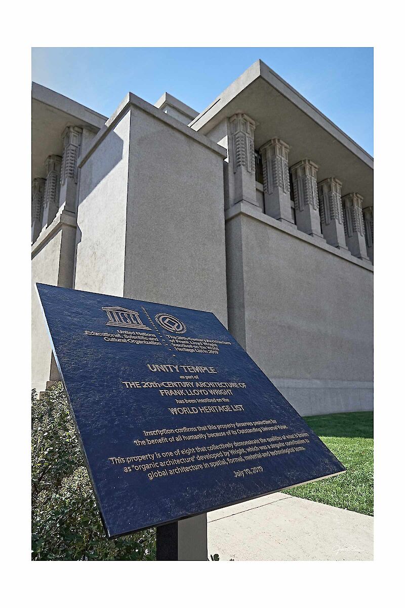 In September of 2021, I travelled to Oak Park in Chicago, Illinois to attend a unique celebration at Unity Temple. In 2019, Unity Temple, Fallingwater, Guggenheim Museum, Hollyhock House, Taliesin West, Taliesin, Jacobs House, and Robie house were inscribe on the UNESCO World Heritage inscription as the 20th Century works of Frank Lloyd Wright. On this day, the site would reveal the plaque commemorating its inscription.