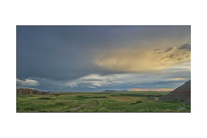 Storms over the grasslands at Badlands National Park, SD