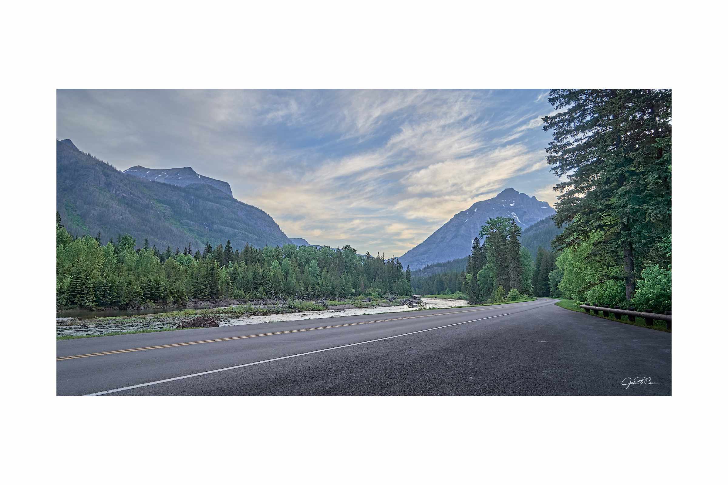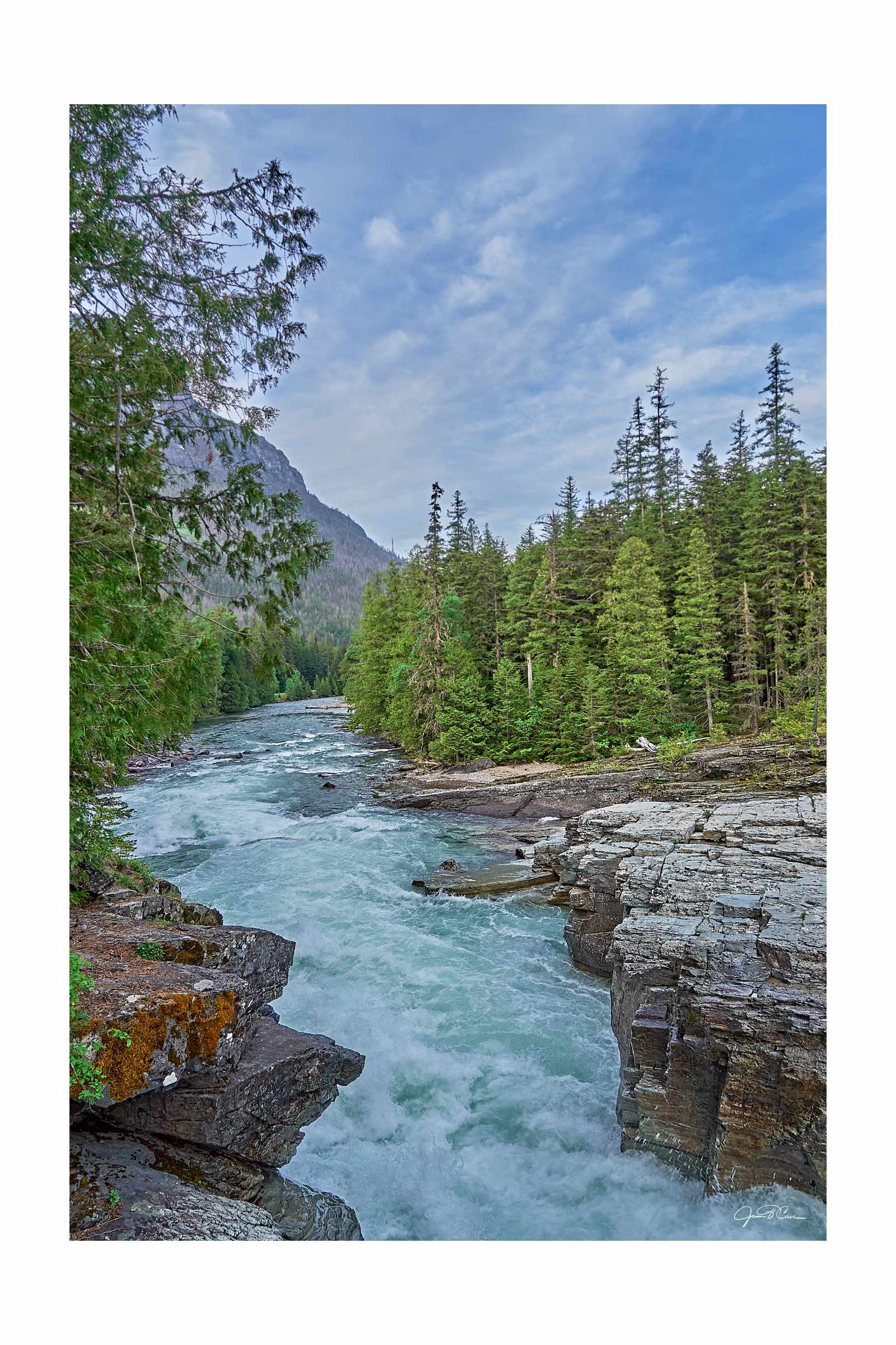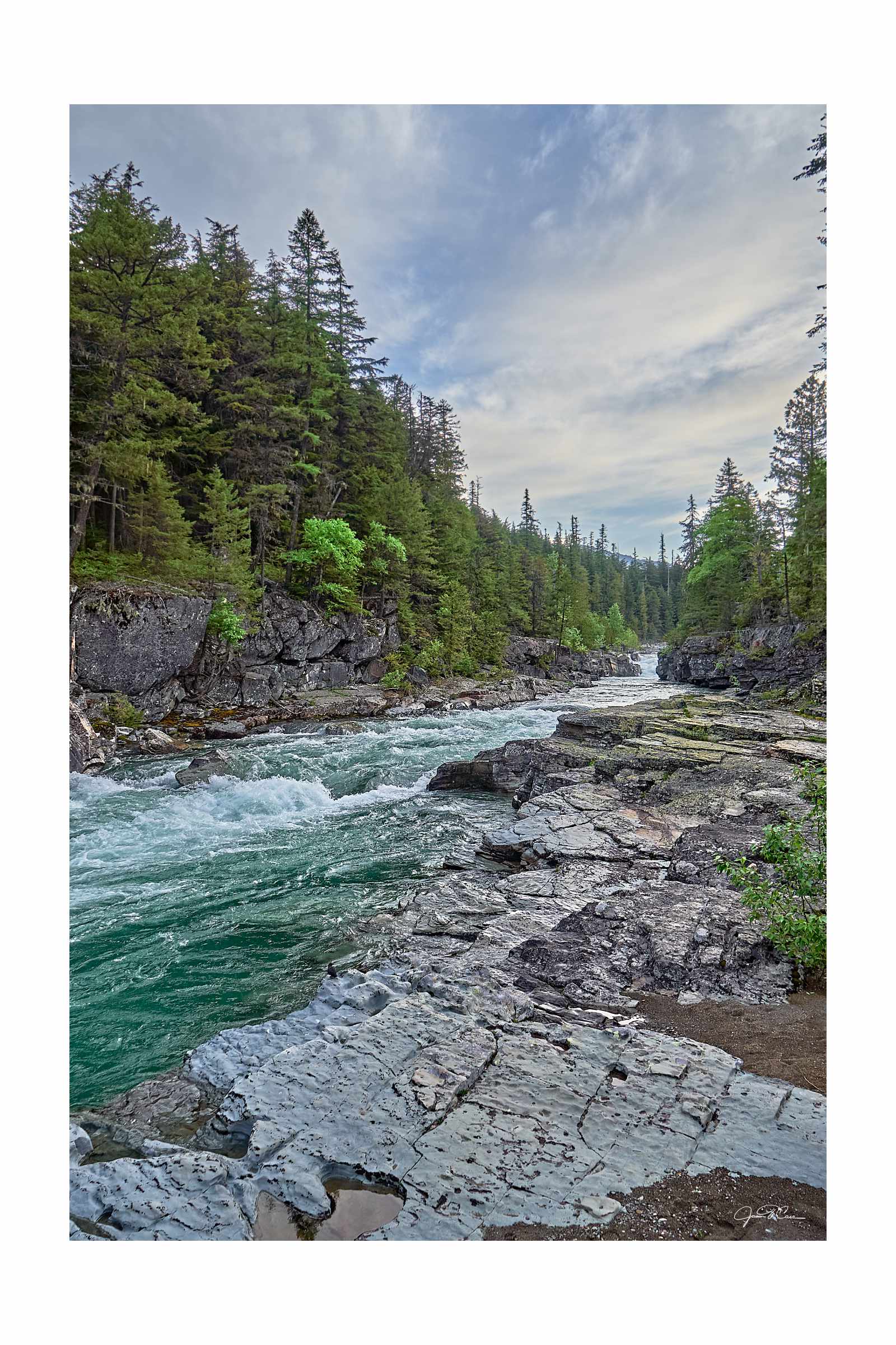 The frigid glacial melt of Glacier National Park winds its way through the park. Wide, seemingly calm streams are transformed into raging torrents as they are funneled through narrow channels before arriving in the placid waters of Lake McDonald.